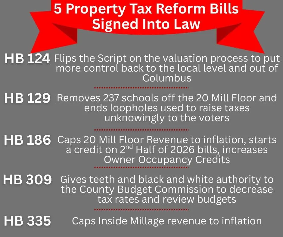 On Friday, December 19, Governor DeWine signed into law five tax reform bills that complete the largest tax reform in fifty years. Auditor Yoder, as a member of the County Auditors Association of Ohio (CAAO) has helped advocate for these reforms and applauds the legislature and the Governor in implementing these reforms. While more work does need to be done, this first step will result in about $2 Billion dollars in property tax savings for homeowners.