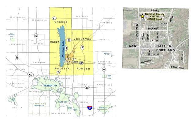 Below is a map that highlights the areas encompassed by the Eastern District Court along with an aerial view of the court and its surrounding area.